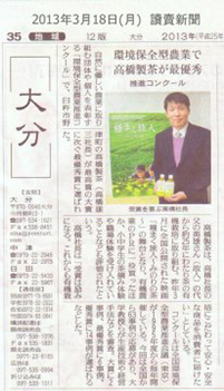 これは長年の親子2代にわたる有機栽培ひと筋へのこだわり、それがきっかけとなった映画『種まく旅人〜みのりの茶〜』の舞台になったことで有機農業のPRに寄与したこと、毎年地元小学校、中学校の生徒を受け入れ、茶摘体験や職場体験をしていること、独自の栽培技術などが評価されてのことです。