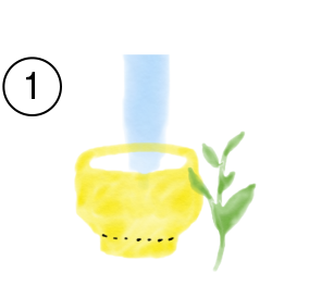 茶碗にいれた湯を急須に注ぎ入れ、約一分ほどむらします。